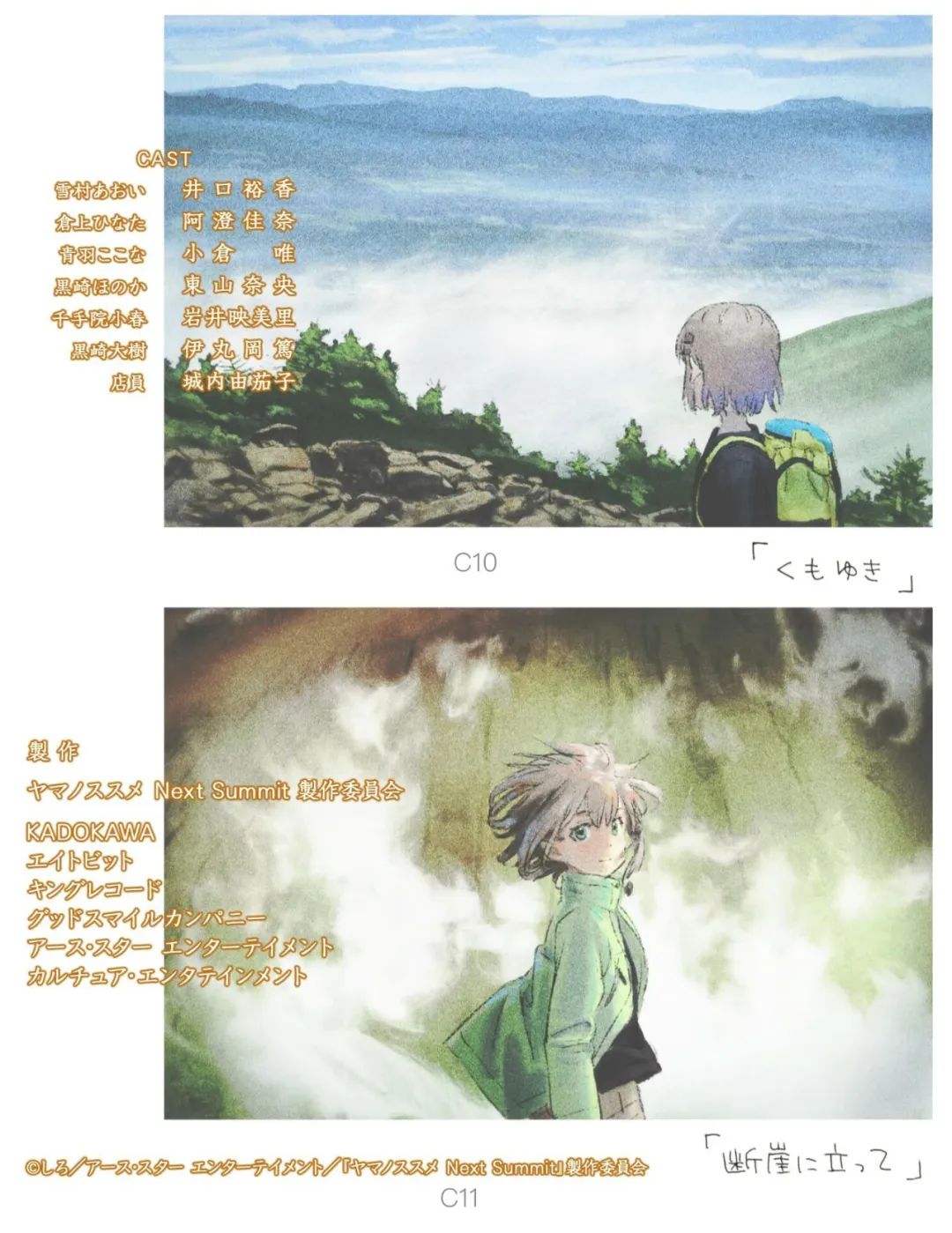 在《向山進發 Next Summit》的片尾影像中,正如前文所説,包括看似是客觀的鏡頭(視線),都可以解釋成一種被“自我”主宰的時間,無人關注的視線正是如此被進行提煉並神諭化,即使是再普通不過的日常也可以為這些以興趣志向為導向的美少女動畫賦予神聖。