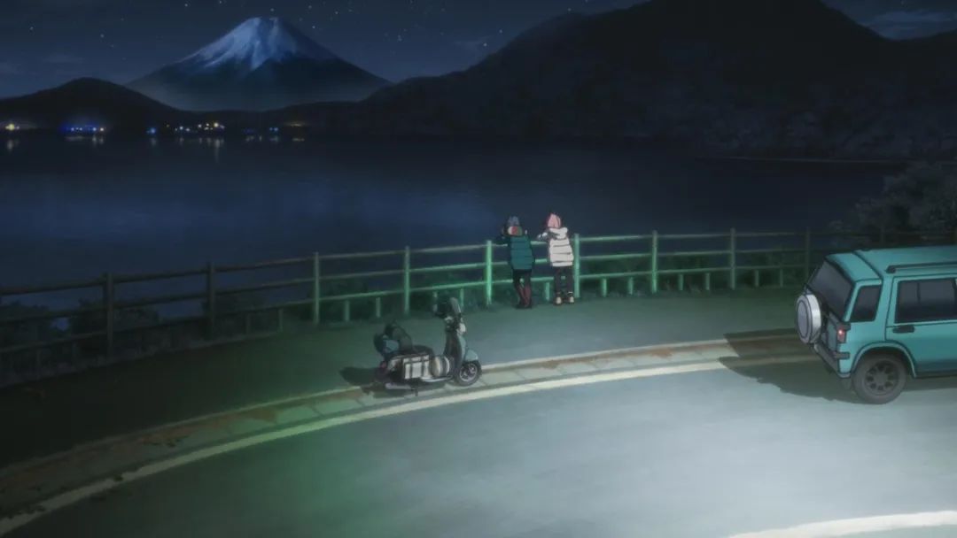 同樣是第二季,最終話凜和撫子從旅途即將到家前,再度望着出發旅遊時路過的富士山,那是她們在假象山梨縣見了無數次的角度,但無言的富士山卻如無形影響着各自關係的內面一樣,凜在撫子的問話下回想起自己首次露營的經歷與初心——對應第一集的內容,這熟悉而不陌生的一切才是推動她們悄然啓動下一次旅行的契機。