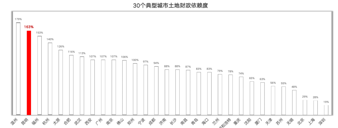 所以雲南的高負債隱患來自於城市對土地金的依賴程度過高