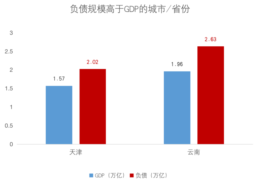 比如,天津在2021年的債務規模是2.02萬億,而當年天津市的GDP只有1.57萬億