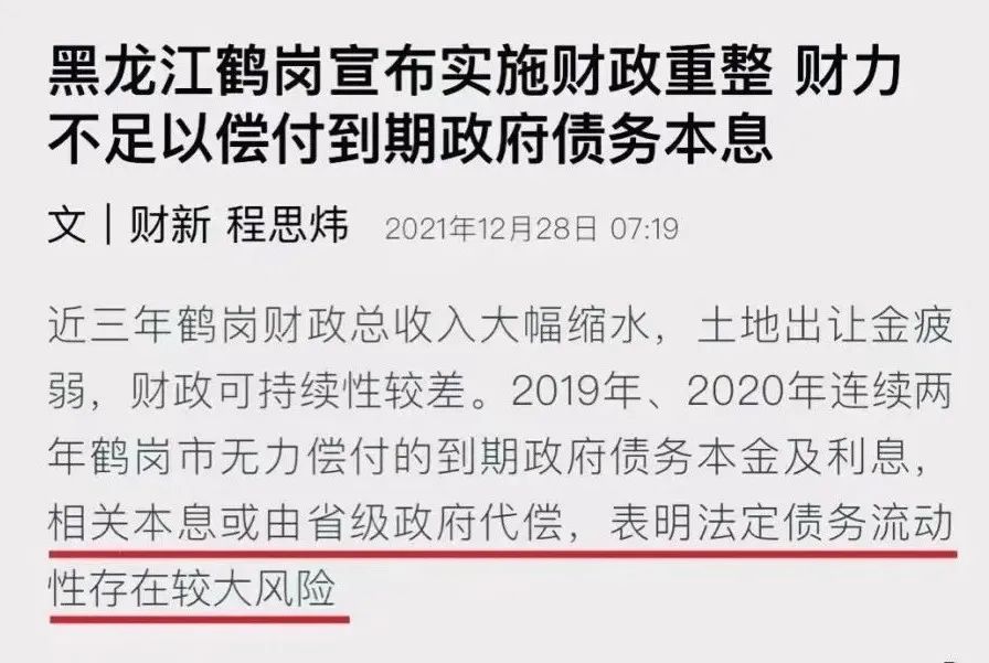在去年底,鶴崗就宣佈實施財政重組原因是財力不足以償付到期政府的債務本息