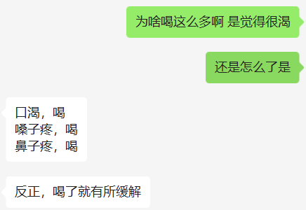 個人感受就是沒啥食慾,每天沒有胃口,就光喝水,也沒有怎麼吃藥,全程就吃了一粒布洛芬。