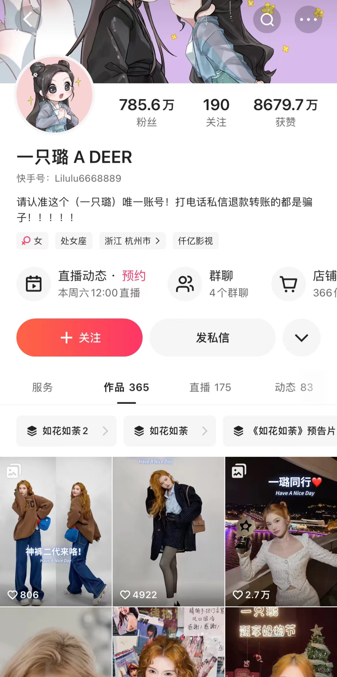 以快手的“一隻璐”為例,她主演的多部短劇在平台爆火,其中《這個男主有點冷》播放量突破了10億,快手賬號@一隻璐 漲粉超過500萬。這也讓她的直播帶貨有了爆發性增長,與2021年相比,直播帶貨GMV增長近千倍。