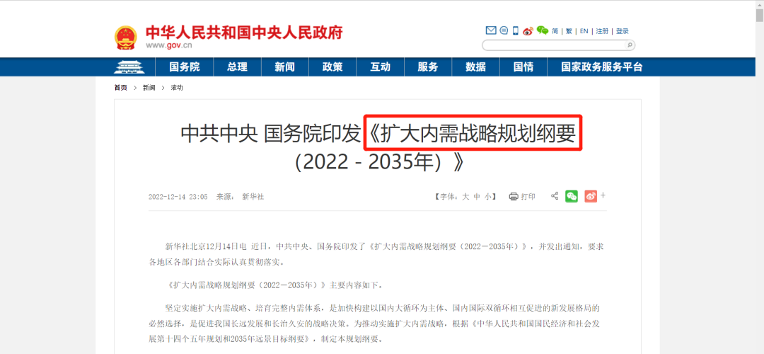 這份擴大內需的戰略綱要,也是我第二次高頻看到一個詞的出現