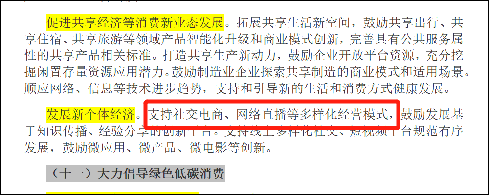 這也大概是我第一次在國家級文件裏看到對直播帶貨的鼓勵