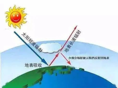 夜晚地面輻射出來的熱量會被雲層擋回去