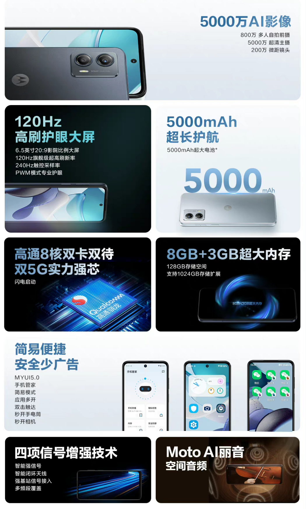 除了 X40,moto 這次還發布了一款千元機 moto g53,打算重新定義入門級的超大杯,頗有點對標紅米的樣子。