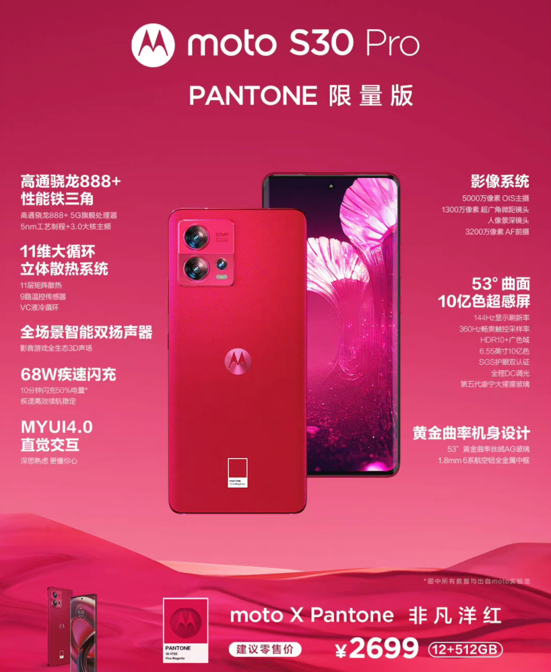 發佈會最後還整了個 One More Thing ,那就是之前預告過的 moto S30 Pro 洋紅色潘通限量版。