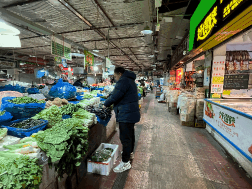 當我問到他,生意怎麼樣和疫情放開前有什麼變化時,他略帶輕鬆地説,“其實沒什麼關係,該買菜還是要來買,戴好口罩就行”