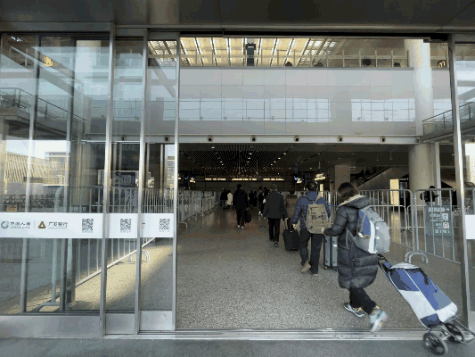 雖然是工作日火車站的人依舊很多,能看到乘客在排隊進站的場景