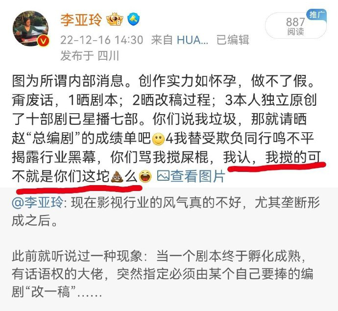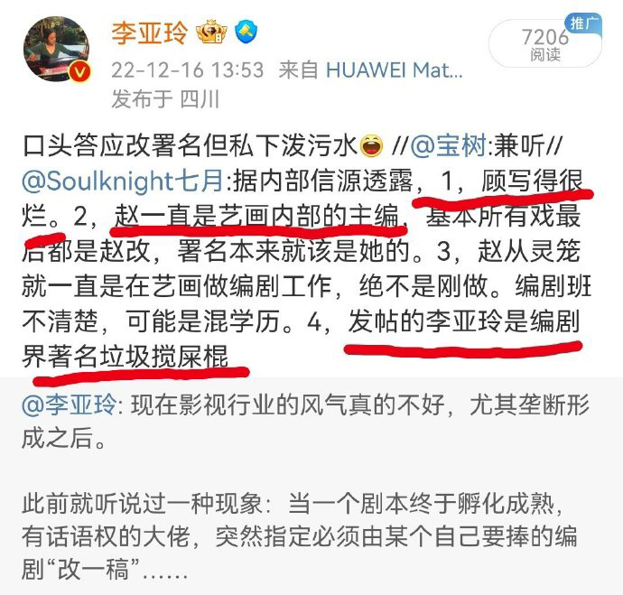 對比他們怎麼詆譭顧奕編劇的,直接説他“一個字沒寫”。