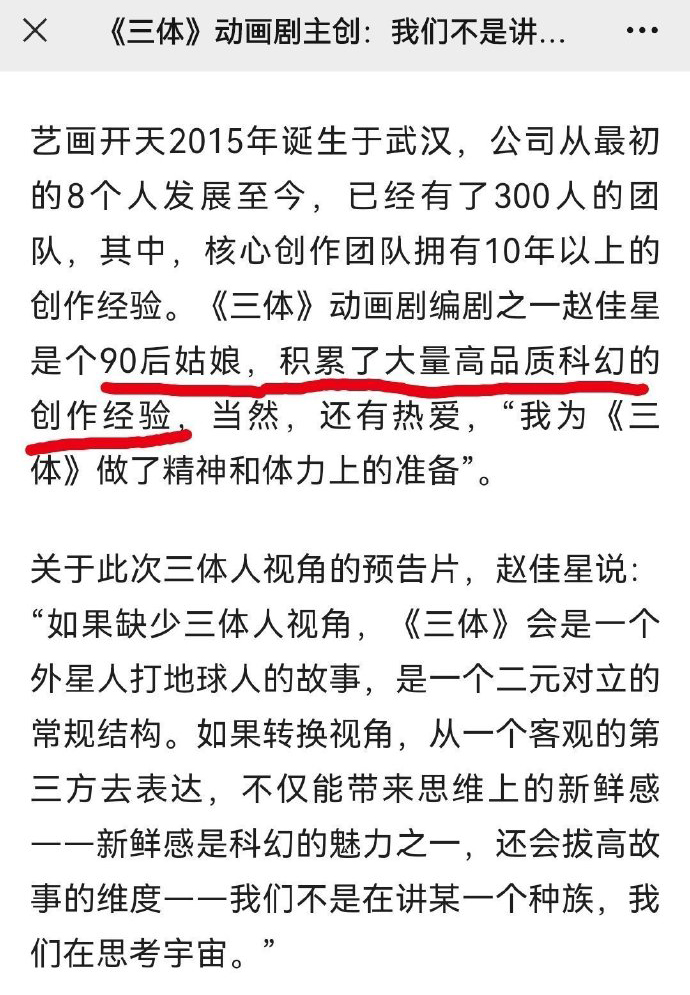 經核實,今年三月上編劇脱產班的編劇,與《三體》動畫版“總編劇”是重名,並非一人,特此更正。