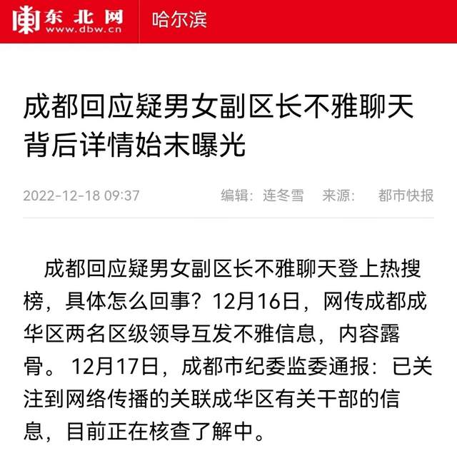男女副區長不雅聊天傷害家庭:不能把工作平台當做搞婚外情的資源!_風聞