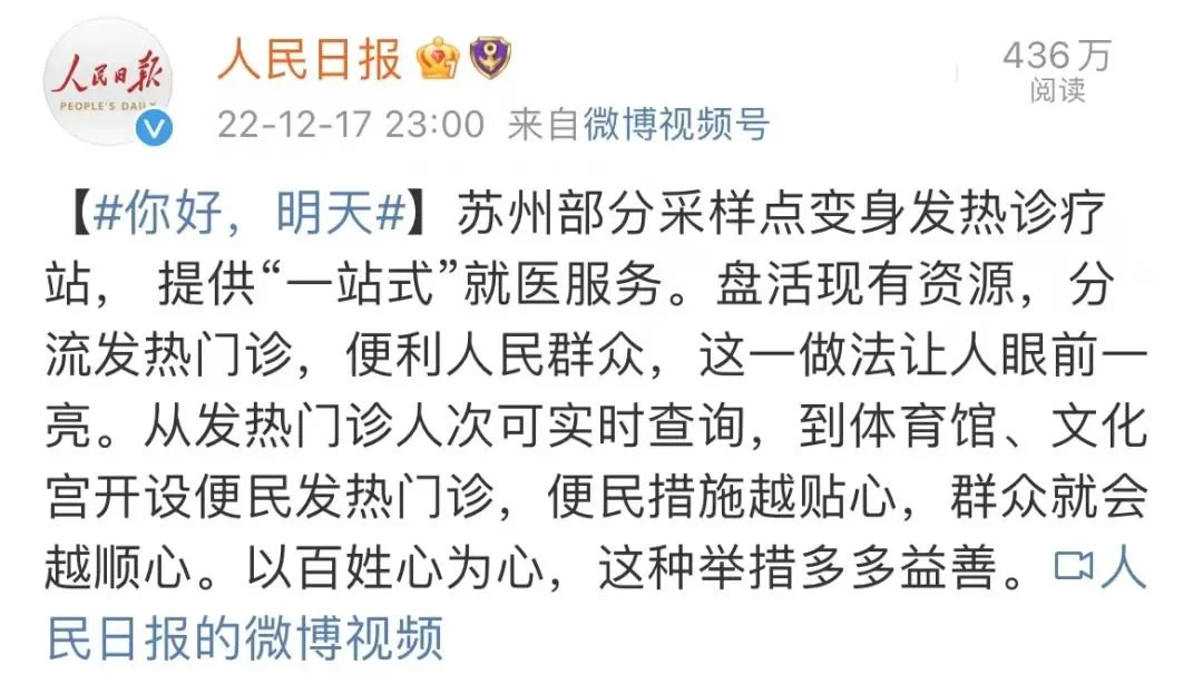 核酸亭變發熱診療站、20片退燒藥賣2元…網友:快抄作業中國青年報2022年12月18日 08:29:5145人蔘與7評論12月18日,話題**#蘇州核酸採樣屋變身發熱診療站#和討論#蘇州核酸屋變身值得借鑑嗎#**接連衝上熱搜,讓網友喊話抄作業!