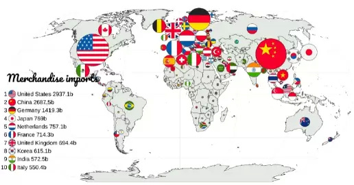 16. 圖十六貨物進口,美國2.937萬億美元,中國2.688萬億,德國1.419萬億。