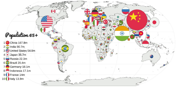 3. 圖三65歲以上人口,中國1.68億,印度0.91億,日本0.36億老齡化最嚴重。