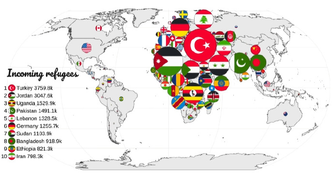 12. 圖十二進來難民數量,土耳其第一,約旦第二。