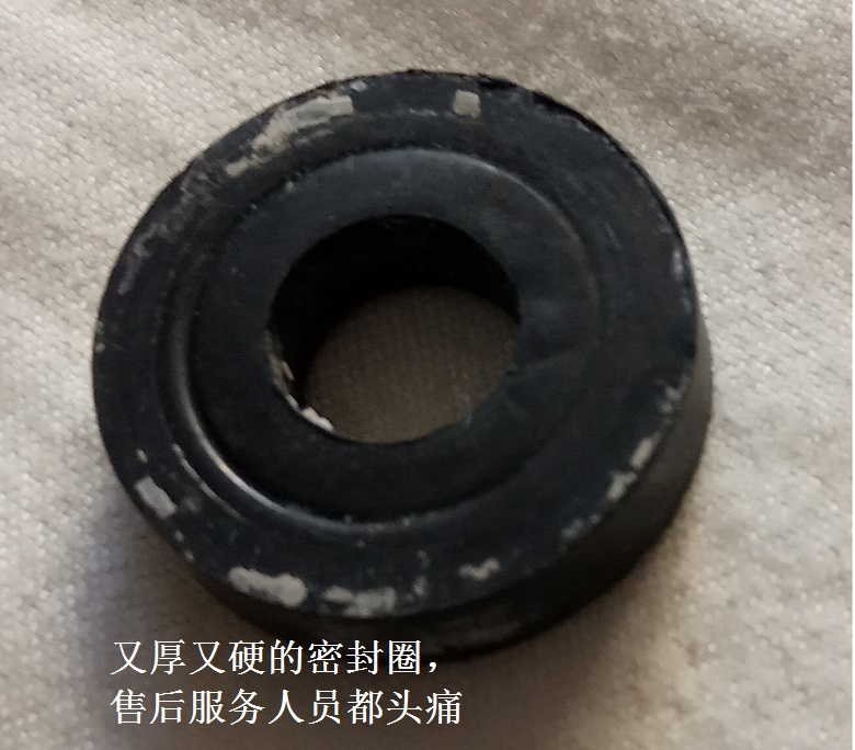 現在售後很多時候就是因為進水排水管路質量問題很多管材老化變硬比比皆是。密封膠墊又厚又硬,單靠人的手勁安裝固定,維修人員也有難度。現在只能找近似尺寸的硅膠墊代替,不但用户自己沒法解決漏水的問題,來找售後人員都不好解決。