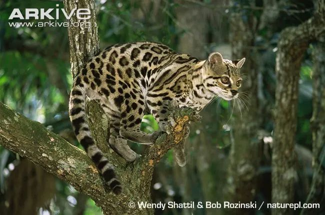 長尾虎貓是所有貓科動物中爬樹最厲害的——它可以頭朝下下樹、後足倒掛枝頭的同時用前爪處理獵物。