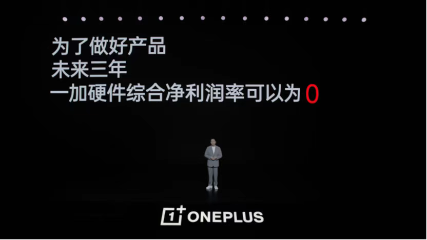 一加中國區總裁李傑表示,“為了做好產品,未來三年,硬件綜合淨利潤率可以為0”。