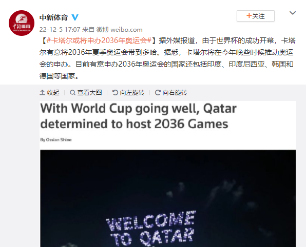 這屆世界盃剛結束,卡塔爾這邊就傳出消息,他們正在積極準備申辦2036年的奧運會。