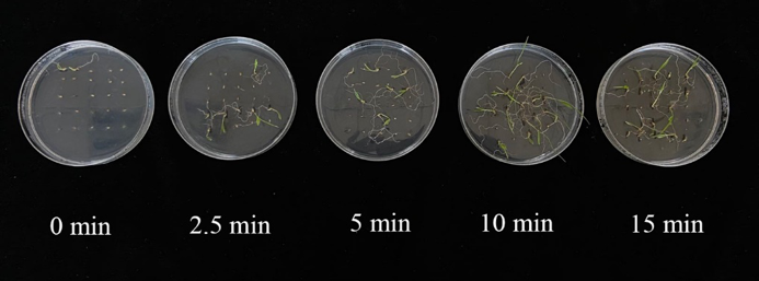 圖6 不同煙燻時間對狗尾草種子萌發的影響(作者拍攝)
