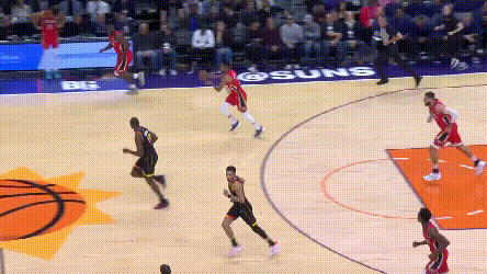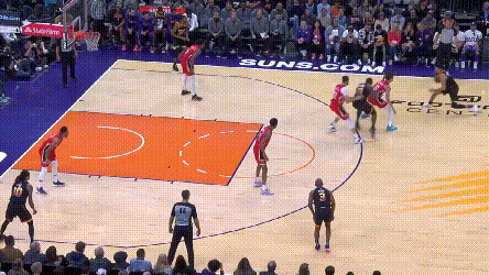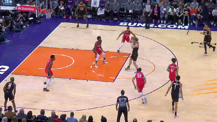 這些都是太陽的基本盤——後場的上球、掩護人於中路的威脅、側翼可靠的投射與再處理,配合充分拉開的空間與轉移球,可能一時手感波動,選擇欠妥,但只要對手防擋拆的配置和執行不是完美無缺,太陽就有機可乘。
