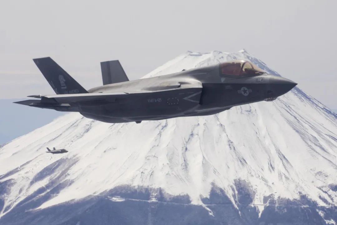 ▲2022年3月,美國海軍陸戰隊的F35戰機在日本富士山附近進行定期軍事訓練。