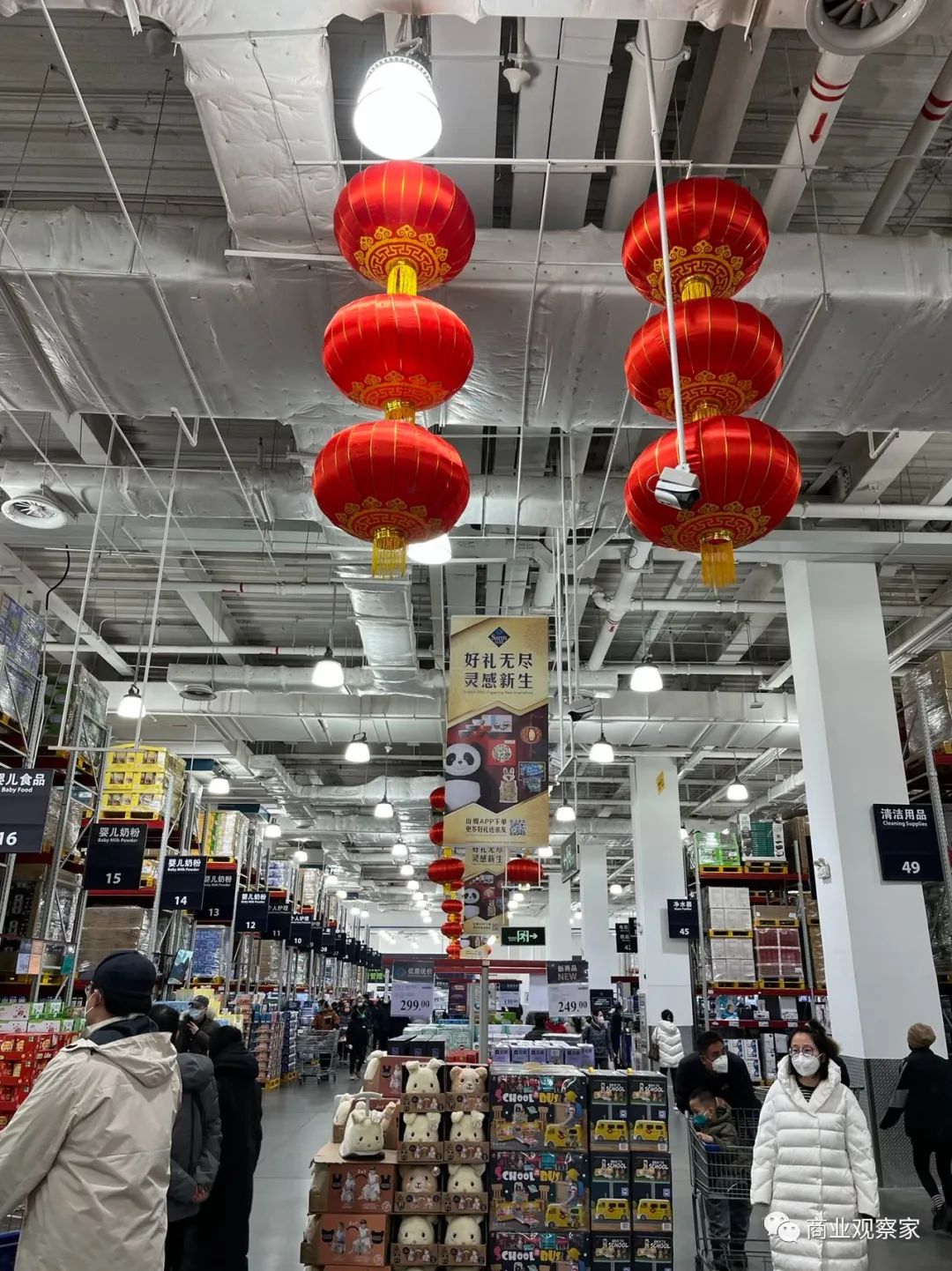 在山姆北京亦莊店,門店已經在佈置節日氛圍,由於今年春節比較早,跟元旦和聖誕不差一個月時間,《商業觀察家》在山姆同時看到了聖誕和新年“堆頭",但顯然新年做得明顯用心得多,也受顧客關注得多。