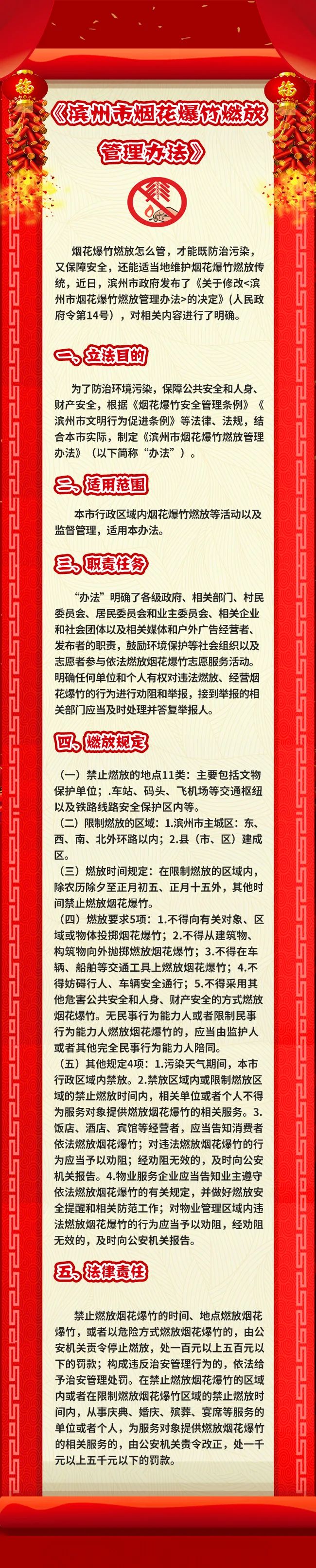 另據濱州市政府官網發佈的《濱州市煙花爆竹燃放管理辦法》(下稱《辦法》)簡明問答,《辦法》充分考慮安全因素和傳統習俗的需求,設置了兩種情況: