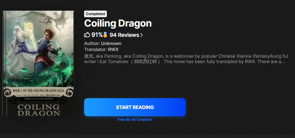 《盤龍》在“Wuxiaworld”的好評率高達91%