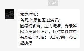 然後,今天申通又通知了,快遞單價上漲