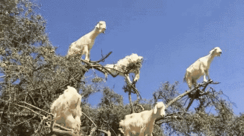 而頑強生活在當地的摩洛哥堅果樹每年六月左右都會產生一種看起來像枯萎橄欖的成熟水果,於是在生存的逼迫下,這裏的山羊就進化出了爬樹的能力,將摩洛哥堅果樹的樹葉和果實當成自己的食物,以保證自己能夠存活下去。