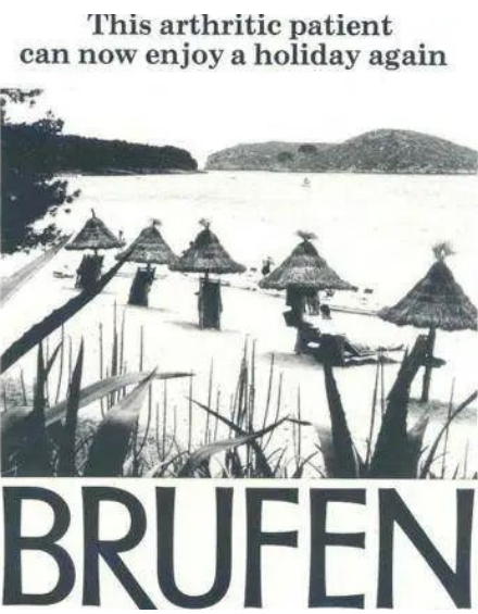 ● 布洛芬最初的廣告:這個關節炎患者現在又可以享受假期了