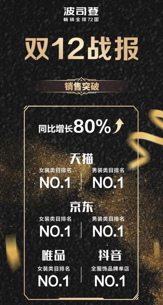 而繼雙十一霸榜多個線上銷售平台之後,在剛過去的雙十二,波司登再傳捷報——