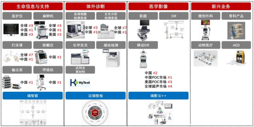 •生命信息與支持業務的大部分子產品,如監護儀、呼吸機、除顫儀、麻醉機、輸注泵、燈牀塔等市場銷售額佔比均成為國內第一;
