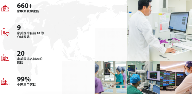 近幾年,邁瑞醫療還推出“三瑞”IT解決方案,包括智慧醫院解決方案,通過搭建院內醫療設備的智能化、信息化、集成化管理體系,提升醫院的管理和運營效率。