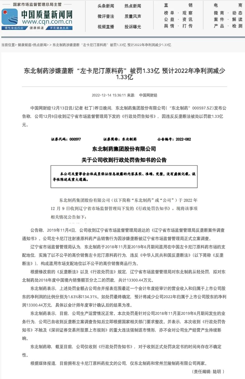 罰款的事要從2018年説起。這一年,網上流傳了一封舉報信,舉報信據説來自左卡尼汀注射液生產廠家人員。