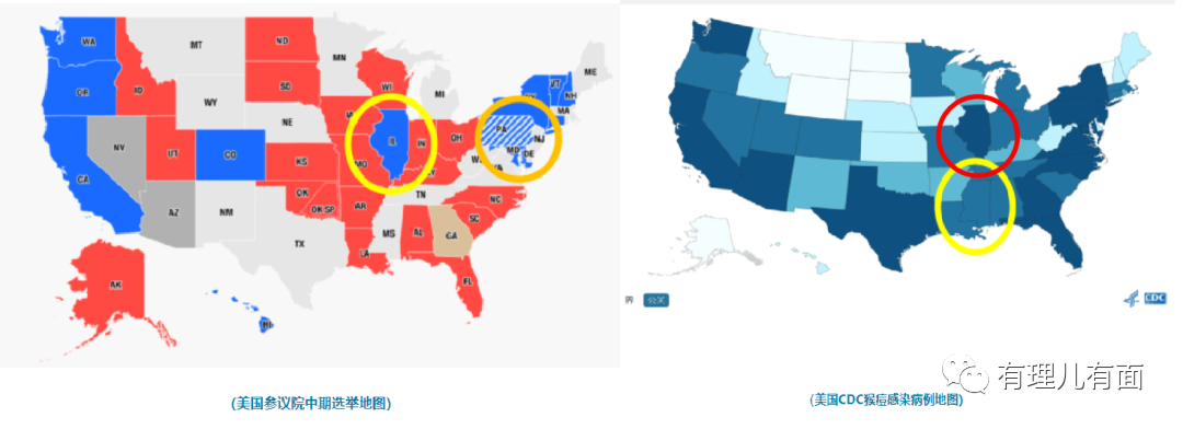 民主黨勝選的州,與美國猴痘高發州,高度重疊。