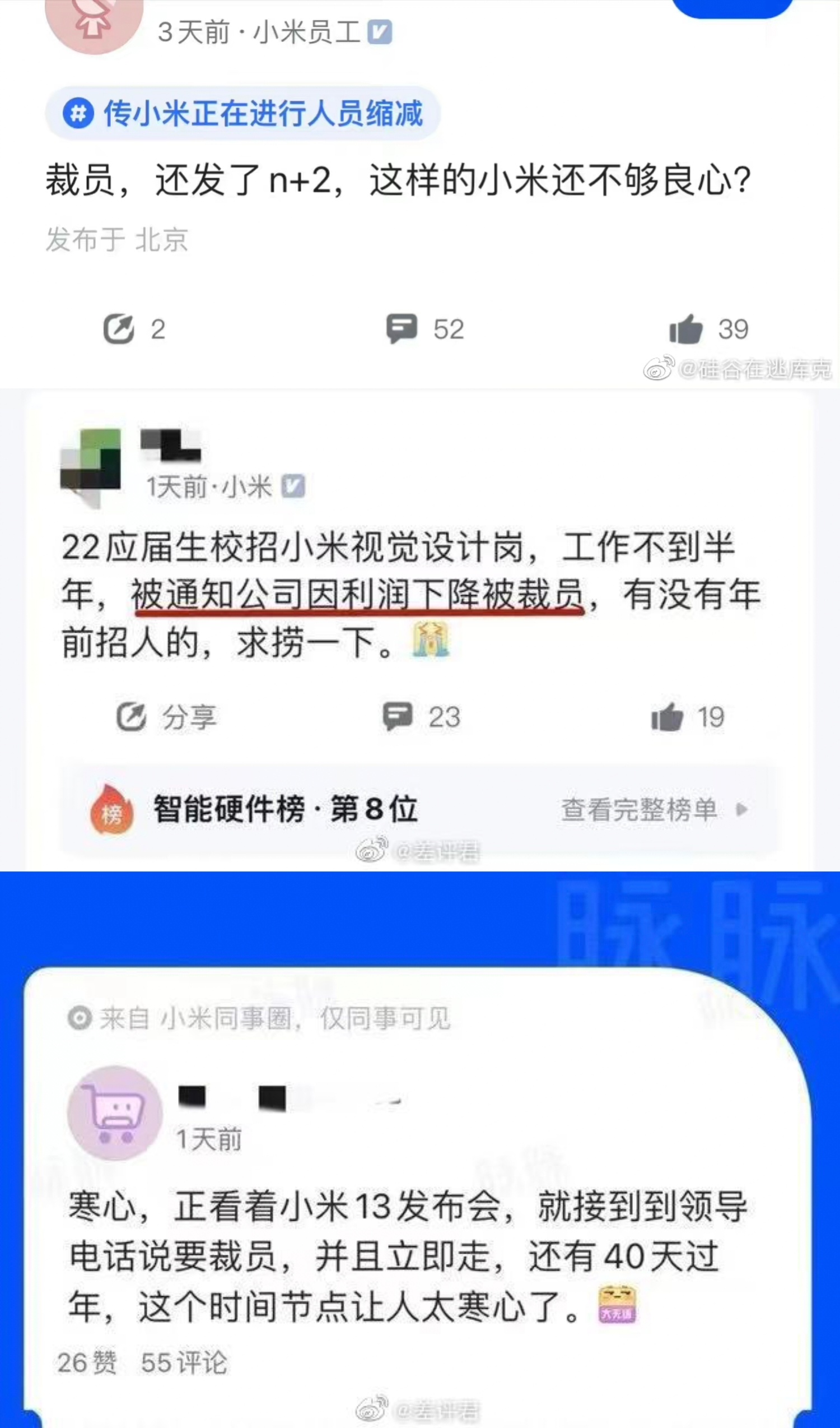 近日有消息稱小米計劃裁員6000名,以此減少人力成本_風聞