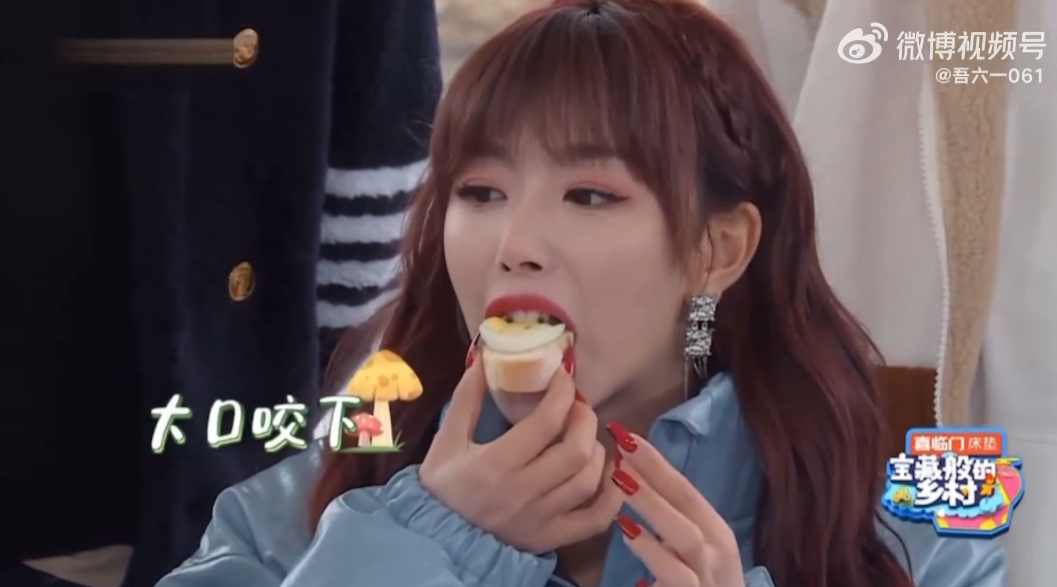 孔雪兒的吃法是將鋪滿魚子醬的水煮蛋,一口塞到嘴巴里。