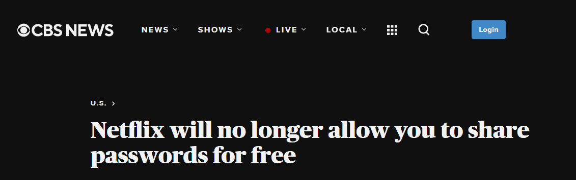 據美國媒體CBS(一家美國商業無線電視網)報道,國外視頻平台Netflix(以下簡稱網飛)計劃從2023年初開始打擊密碼共享。