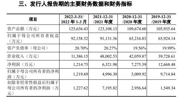2019-2021年及2022年一季度,健耕醫藥的營業收入分別為3.97億元、4.21億元、4.80億元、1.14億元,歸母淨利潤分別為9714.84萬元、5009.92萬元、4996.30萬元、1219.69萬元。