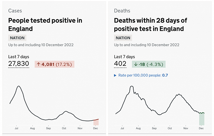 根據官方數據,截至12月10日的七日累計新增確診病例數量為27830例,七日累計死亡病例為402例。