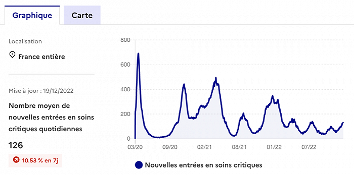 平均每日新增重症監護入院人數。圖源:法國政府官網