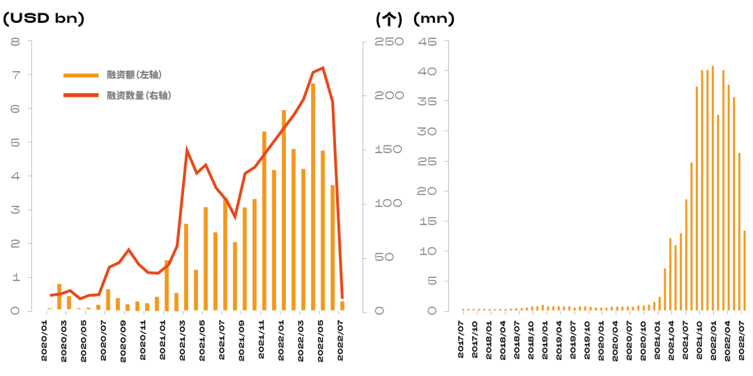 左圖為 GameFi 融資金額和融資數量,右圖為 GameFi 用户數量。|圖片來源:華泰研究