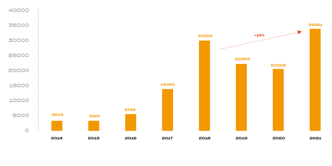 衡量指標是開發者數量。真正的建設者,就會真正動手去開發。據 Electric Capital 數據,Web3 每年新加入的開發者數量,從 2014 年的 3203 位增至 2021 年的 34391 位,漲了近十倍。儘管中途因監管趨嚴、幣值下跌有兩年的倒退,但總體趨勢是向上的。「無論週期如何波動,這是 Web3 行業唯一昂揚向上的指標。它不可能倒退。」汪天凡説。