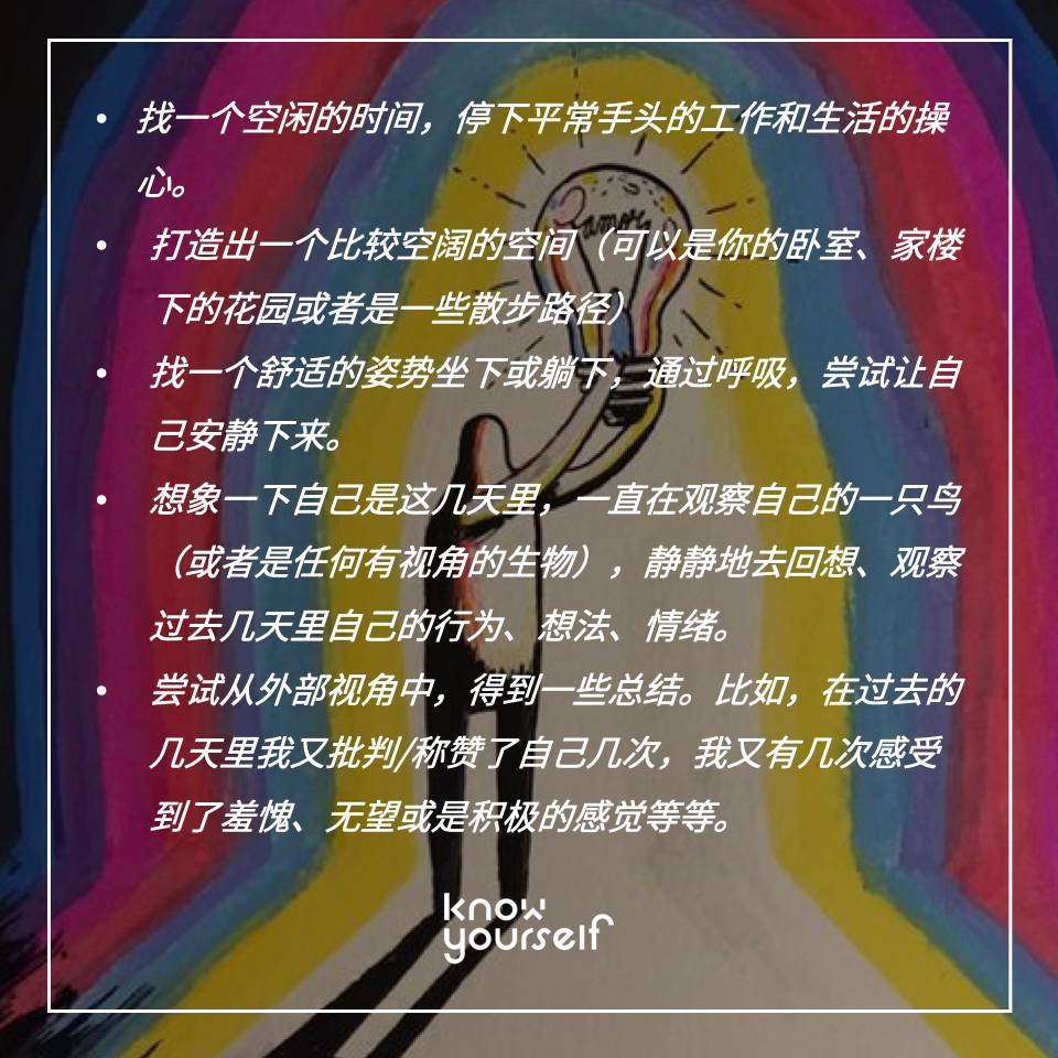 聽起來有些玄,我們為大家準備了一個「練習觀察性自我」的實操指南(Meyet, 2021),建議長按圖片保存哦。