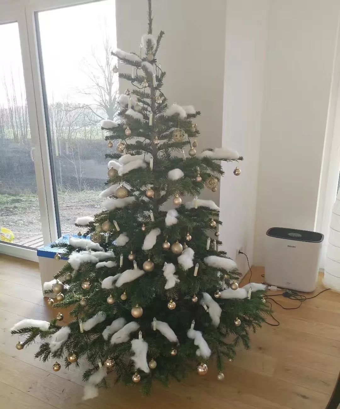 首先是聖誕樹。每年絕大部分德國家庭都會去買一棵兩米左右的真樹,然後在樹上掛上彩燈,卡片,絲帶。
