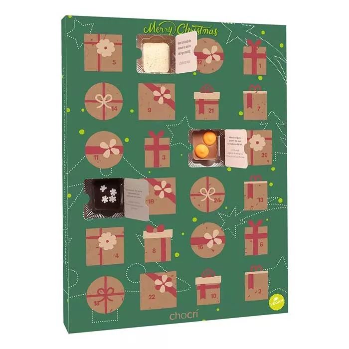 這份日曆一般是一個扁扁的盒子,盒子上有24個可以打開的小門。每個門上寫着一個數字,從1到24。